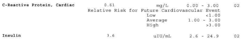 The fasting insulin also confirms that my carb intake is definitely well under control.